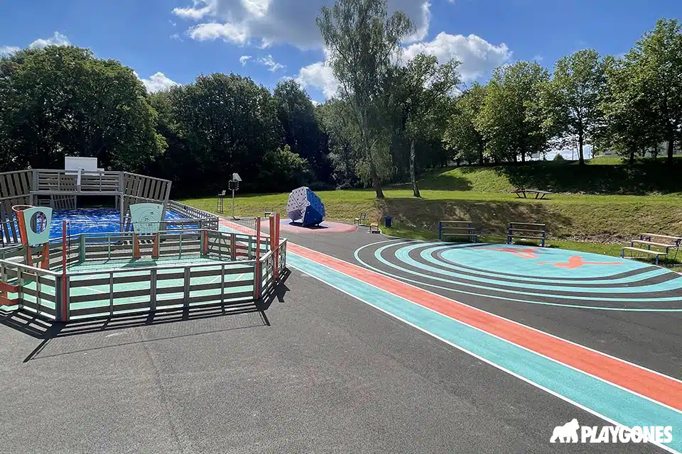 Le Plateau Sportif de la Chapelle, situé au cœur du quartier des Chênes à Hombourg-Haut, est devenu un lieu incontournable pour les amateurs de sport et de loisirs. Réalisé en collaboration avec les habitants et les équipes de la collectivité, cet espace innovant a été conçu par le studio de design de Playgones, avec une vision centrée sur le design actif, l’accessibilité, et l’intergénérationnalité. Grâce à l’initiative et au soutien de l’équipe municipale, ce projet est aujourd’hui un véritable succès.